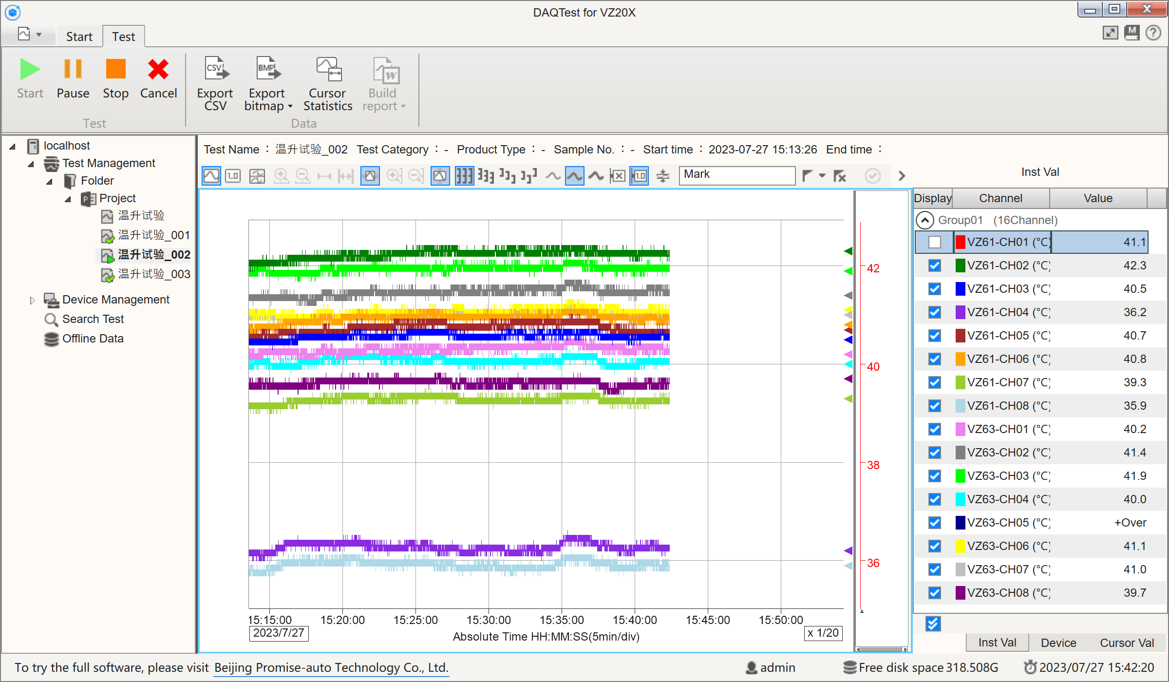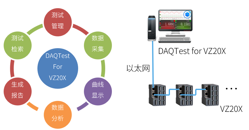 DAQTest for VZ20X是基于DAQTest测试管理平台,专为横河电机的VZ20X仪表定制的数据采集和设定软件。该软件支持多台VZ20X的同步采集,支持VZ20X的检索和配置。在一个软件中就能完成所有必须的工作。