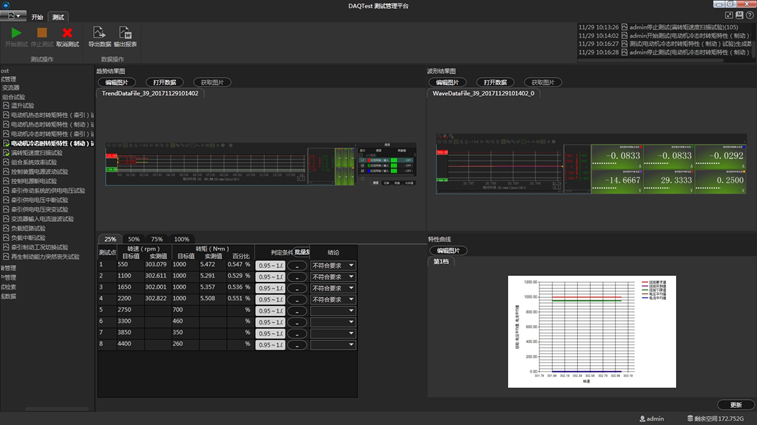 o 支持两套标准:GB/T 25117.3-2010《轨道交通 机车车辆 组合试验第3部分 间接变流器供电的交流电动机及其控制系统组合试验》 和GB/T 25122.1-2010 《轨道交通 机车车辆用电力变流器 第 1 部分:特性和试验方法》 o 整合了多种仪表:DL850、WT1806E、 GP20、 风速计、噪声计、绝缘电阻测试仪、介电强度测试仪
